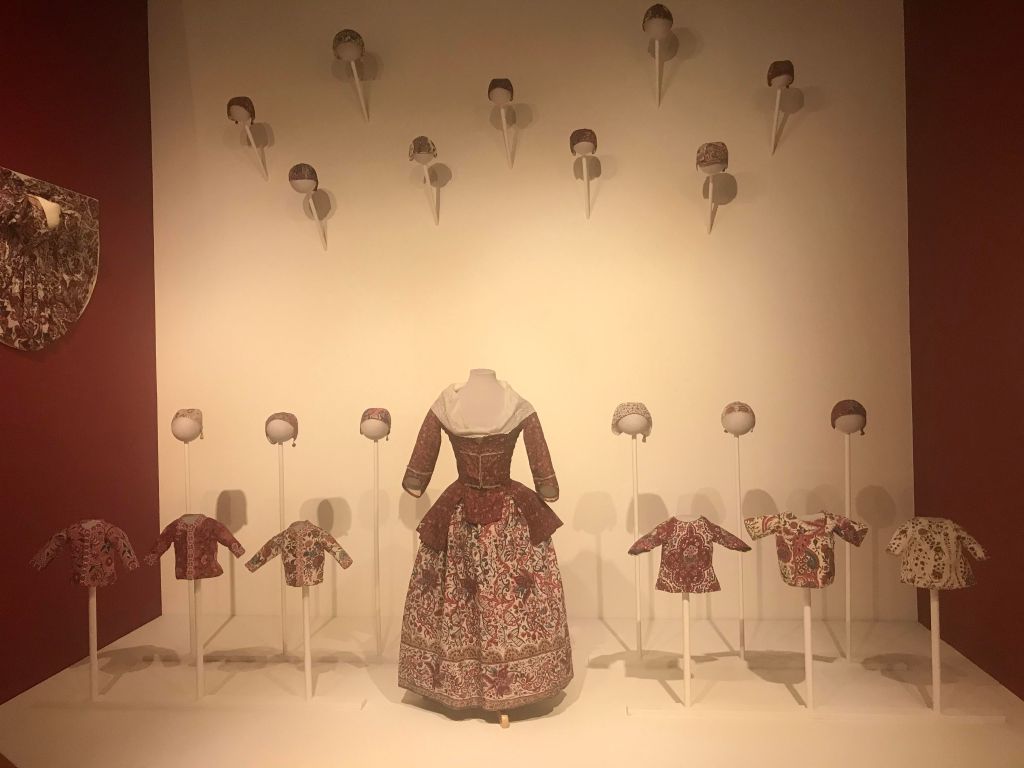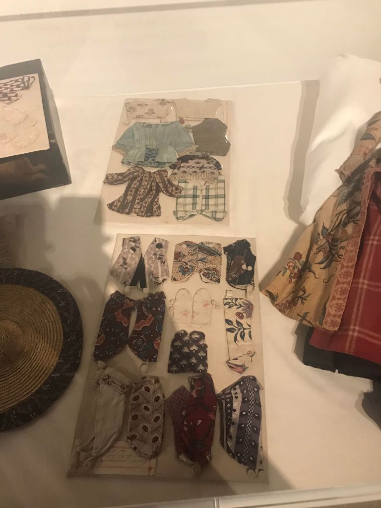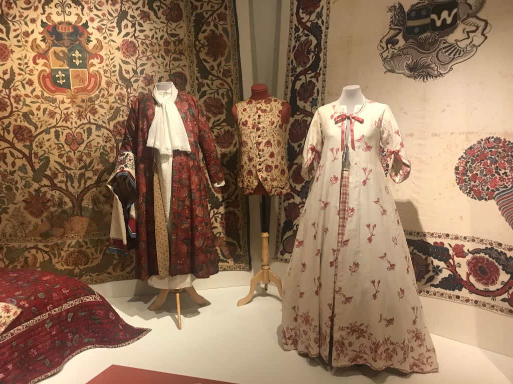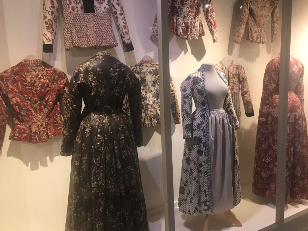 The durability of high quality cotton chintz can be seen in the selection of beautifully preserved children’s clothing (most likely off-cuts or cut down from adult garments), which isn’t something that you often see in exhibitions. The assortment of tiny baby jackets, hats and mittens are so touching and there’s even a collection of dolls’ clothing – perhaps cut down further from old baby garments.